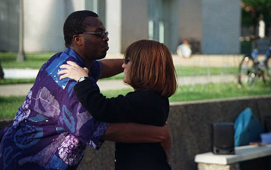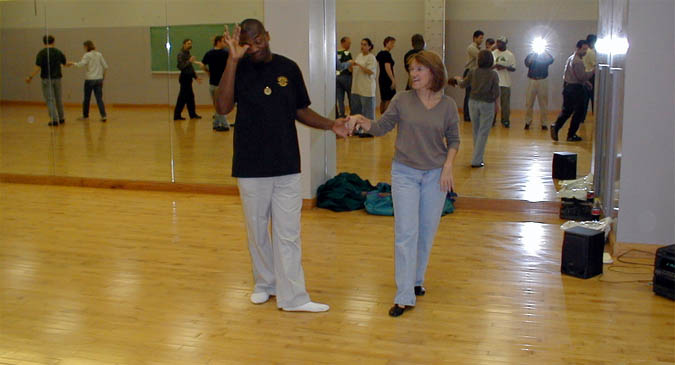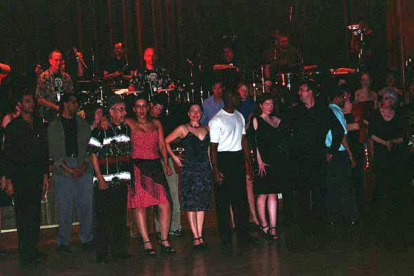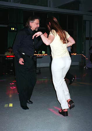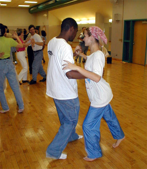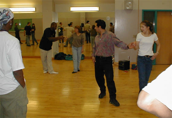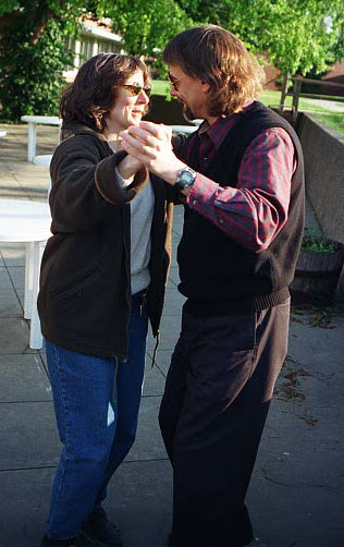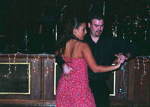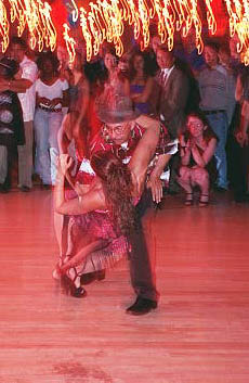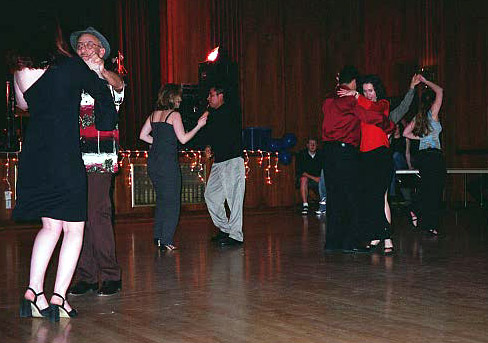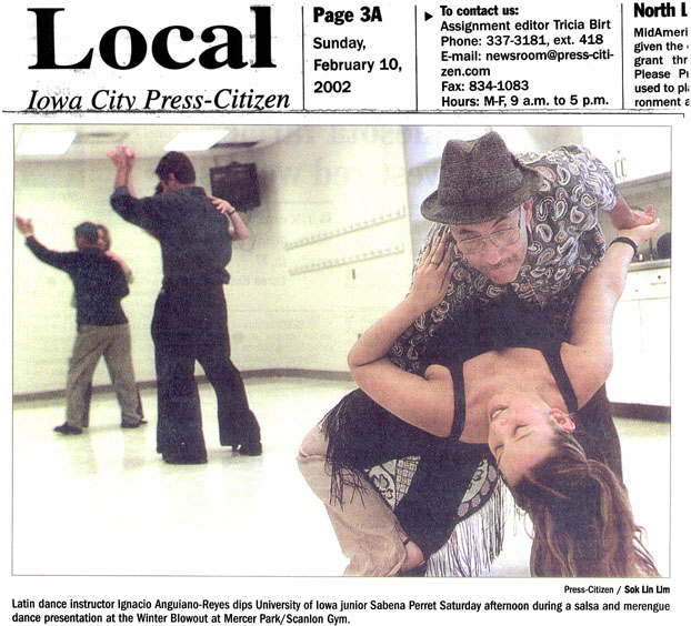 These pictures were taken beginning in 1999 at various locations, including Latin American Dance Club Sunday evening gatherings at the UI Fieldhouse, including a surprise party for newly married Ed and Carol in March 2002; Downtown Iowa City Pedestrian Mall Street Dances; LADC picnic at the Memorial Union, when Greg and Jane arrived a bit late; Eusebio's montage of the Arts Fest 2000 performance of Alto Maiz; Ignacio's presentation of the Latin Dancing Stars at Arts Fest 2001; New Year's Eve Benefit for the Englert held at First Avenue Club, Iowa City; Gusto Latino 2002, Juan and Shanna's Wedding Dance, the Latin Dancing Stars at Arts Fest 2002, and a Bachata Demonstration and Lesson by Vladimir & Kara Santos!. They are presented here in roughly reverse chronological order, with "Newest First".
